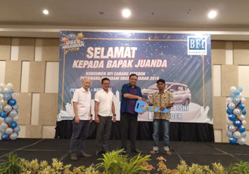 Juanda is listed as a customer of BFI Finance domiciled in Cirebon, who performs welding workshop business daily. He has trusted the financing of BFI Finance since last year to increase his working capital. With good track record and no payment is past due, Juanda was very lucky to get Mitsubishi Xpander as the prize. The 25% tax on the prize was borne by BFI Finance as the organizer of UBER Milyaran 2018 program.