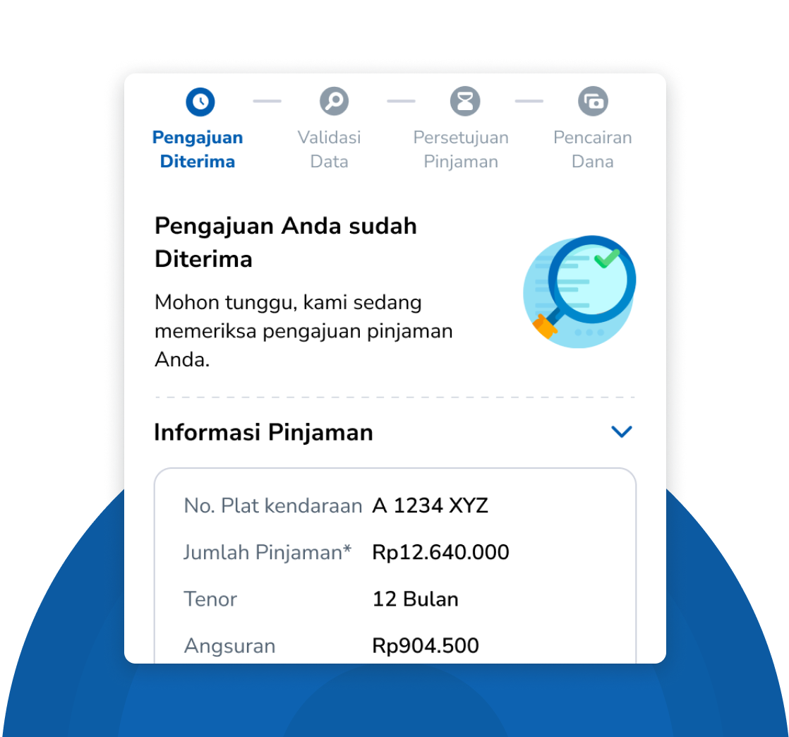 Dari tahap awal hingga verifikasi, status pengajuan Anda tampil lengkap sehingga Anda selalu tahu sudah sampai mana proses berjalan.