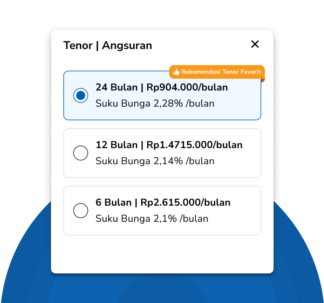 Pilih durasi cicilan sesuai kemampuan Anda.