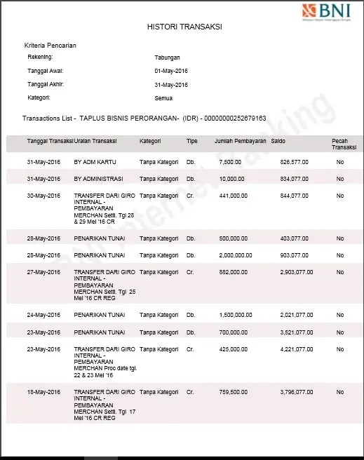 Sedangkan mutasi rekening menampilkan transaksi yang terjadi pada sebuah rekening secara singkat, seperti kredit, debit, tanggal transaksi, dan saldo rekening pada tanggal tertentu. Mutasi rekening juga dapat digunakan untuk memeriksa transaksi terbaru dan mengecek saldo rekening saat ini.