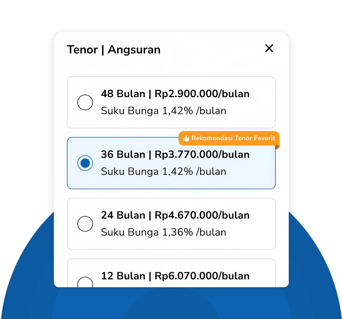 Sebelum mengajukan Anda dapat menikmati simulasi angsuran sesuai dengan kendaraan yang akan dijaminkan